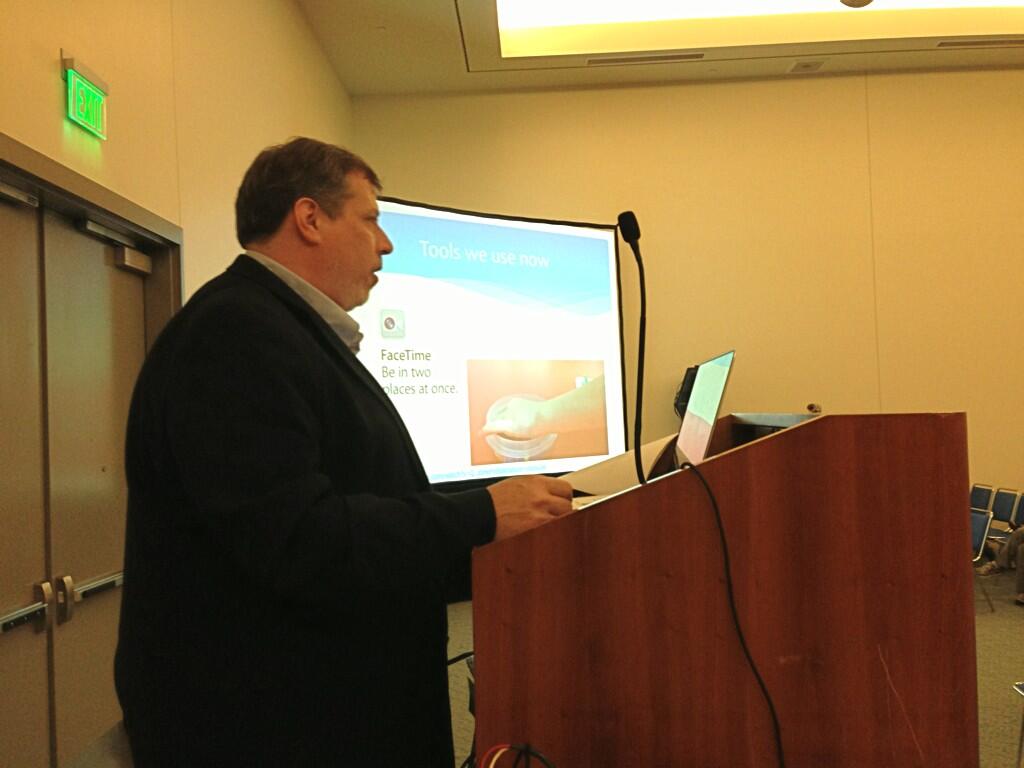On the day the technology didn’t all work and our plan B had to become the Plan A for the panel presentation. I could see into the room via the webcam on Erik Johnson’s laptop, but the sound quality was poor and there was a nasty feedback loop occurring on the laptop. That was when we simply decided to play the YouTube clip rather than have me speak live. The absolute winning tech hack of the day was Susan Burwash’s suggestion to use Skype from her iPhone to me sitting on my computer. It was perfect! I could watch who was presenting via the webcam, hear what was being presented via Susan’s phone and I was able to watch twitter and contribute throughout the whole 1.5 hours! It was amazing!
