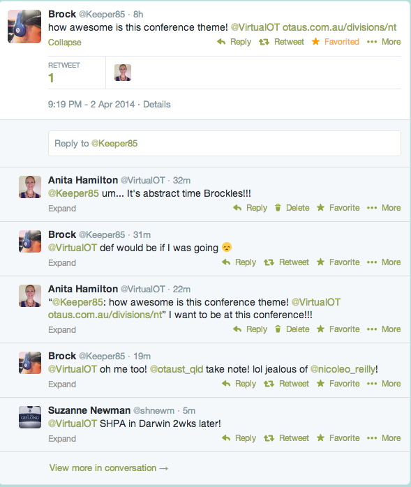 Tonight I found out from Brock via Twitter that the Northern Territory Division of OT Australia has decided that the theme for their State conference in August 2014 will be TechnOT!  That is FANTASTIC news!!!